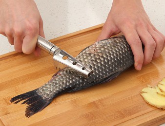 - Твердую кожицу с обратной стороны соскребите овощечисткой.