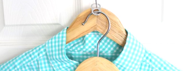 Чтобы сократить пространство, вешалки с одеждой можно зацепить с помощью колечка от банок. Таким способом вещи расположатся друг под другом и не займут много места.
