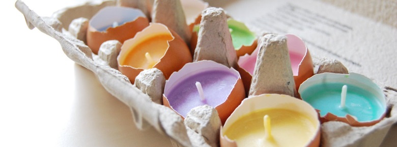 Его можно получить, расплавив на водяной бане раскрошенный воск от обычных свечей. Когда воск в скорлупках застынет, скорлупу снимают и получают интересную дизайнерскую свечу.