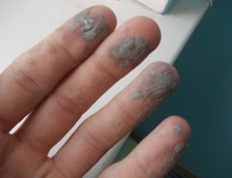 - Обильно смочите руки водородом, наденьте резиновые перчатки и смойте вещество спустя 15 минут.