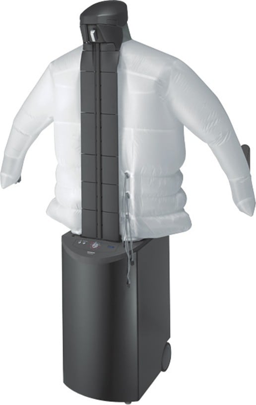 Манекен предназначена для глажки пиджаков, рубашек, блуз, верхней одежды и пр. Она имеет форму манекена, изготовленного из высококачественного и крепкого шелка, в который поступает подогреваемый воздух. Машина самостоятельно надувает манекен, руководствуясь размером одежды.