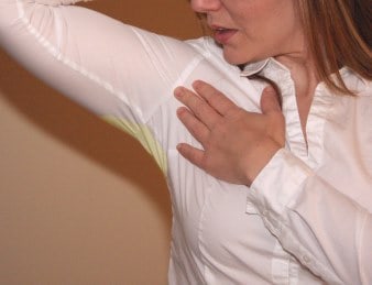 - Пятна от пота под мышками