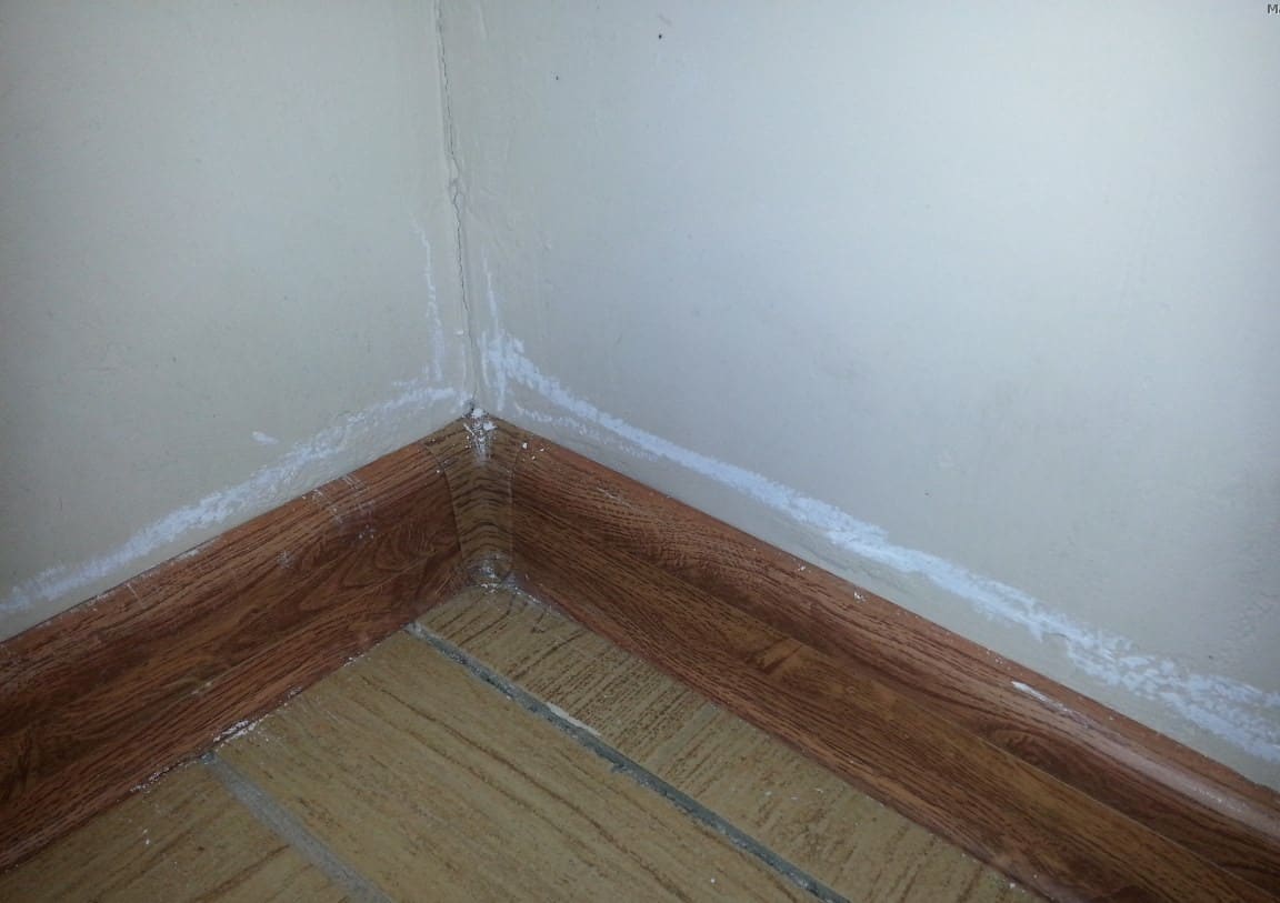 - около плинтусов и трещин в стенах;