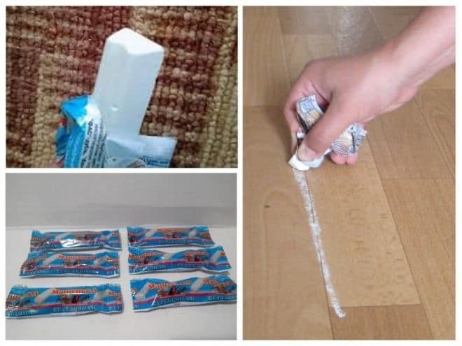 Мелок легок в использовании. Во время обработки жилища потребуется начертить прямые линии в излюбленных местах паразитов: