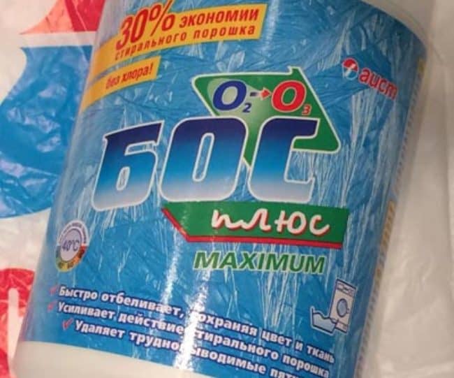 Отбеливатель «Бос» – мощное средство, выводящее многочисленные типы пятен и желтизну с белоснежного белья. Он безопасен для ткани и безвреден для здоровья, не вызывает аллергической реакции. В магазинах продаётся в виде порошка – Бос плюс maximum, жидкости – Кислородный, геля для замачивания – плюс Oxi и спрей Anti Stain для выведения стойких пятен.