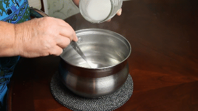 - Положите порошок в кастрюлю.