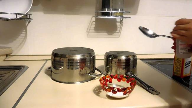 Внимание!Если кастрюля имеет полированное покрытие, соду из смеси следует исключить.