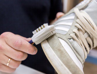с синевой, поскольку они не обесцвечивают ткань, главное – стирайте холодной водой. Можете натереть обувь, смочив в этих растворах ватный диск, чтобы