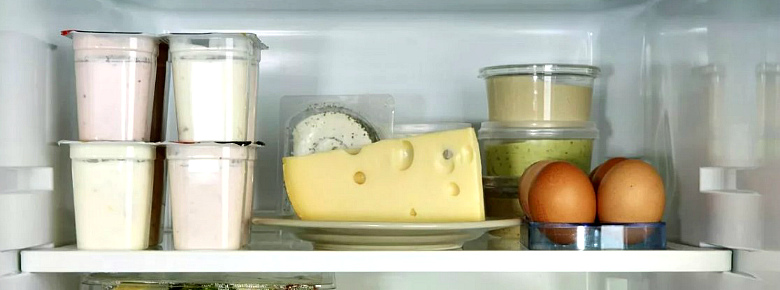 - Верхняя полка: молочные продукты, яйца, готовые блюда.