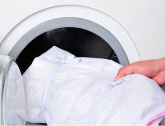 - Помещаем наряд в специальный тканевый мешок. При его отсутствии, участки со стразами, пайетками и вышивкой можно зашить марлей.