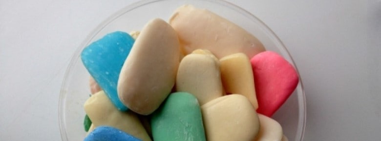Разноцветные кусочки можно сделать и из обмылков детского мыла, добавив натуральные красители.