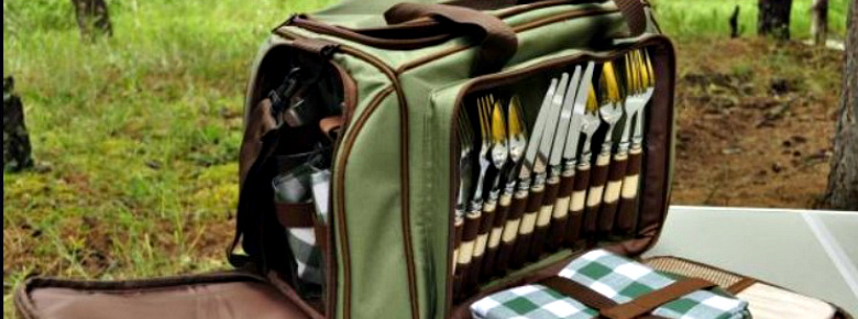 На деле чемоданчиками для пикника называют сувенирные наборы, лишь косвенно относящиеся к теме. Из всех полезных вещей в них — отсеки и шампуры в комплекте. Такие чемоданчики часто оснащаются фляжками и наборами стопок.