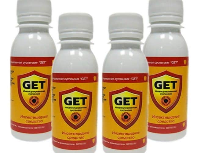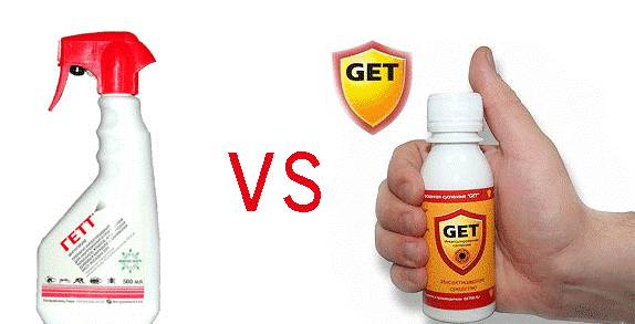 Новичок Get пришел на замену легендарному инсектициду Гетт, который активно использовался даже в больницах и детских садах. Использование хлорпирифоса позволило понизить токсичность для людей и животных, при этом сделав Get идеальным убийцей всех ползающих насекомых. Погибают не только взрослые особи, но и личинки. Приятный запах снижает дискомфорт от применения инсектицида в жилых помещениях.